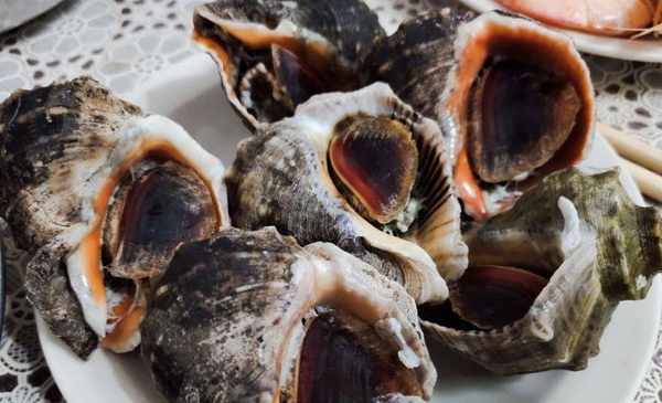 让广东女孩大开眼界,山东人真是太豪爽了,海螺竟然这样吃?广东人是怎么吃海螺的吗?把螺肉取出来切成薄片,调着吃,或者熬粥。