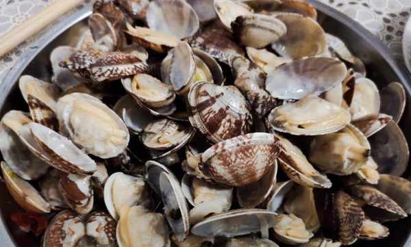 10块钱一斤的蛤蜊,买了四五斤,蛤蜊一般辣炒或者做成汤,在青岛则直接用白灼水煮开,端上桌。