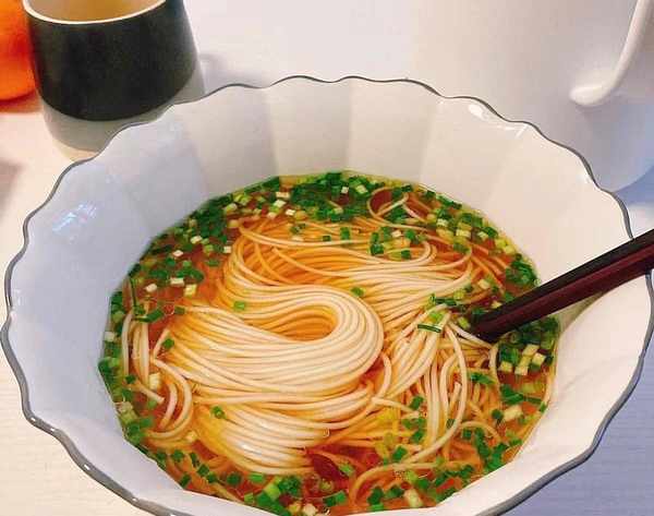 阳春面是江南地区非常流行的一种面食,其汤清味鲜,清淡爽口,非常符合江南地区精致秀气的形象气质。