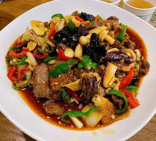 要说拉条子里最有名的一款当属是过油肉拌面,几乎可以作为每一家新疆面馆的招牌。金红鲜亮、浓香嫩滑的过油肉,再配上炒好的红辣子、青辣子、皮牙子等蔬菜和面一拌,一入口瞬间让人唇齿留香,难以忘记!
