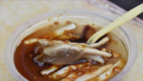 土笋冻是泉州的名小吃,外观看似晶莹剔透,就好像果冻一样,入口q弹,还能清热败火。土笋冻本身没什么味道,冰冻一下再搭配上蒜头和其他调味料,味道更好吃,是夏天防暑降温的佳品。
