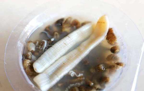 其实不是的,土笋冻,是虫子,一种叫做沙虫的虫子,和蚯蚓有点像,但是要比蚯蚓来得大,那个冻就是沙虫熬出来的胶,跟猪皮冻是一个道理的。土笋冻虽然是虫子,但是一点也不会恶心,圆圆胖胖地看起来还有点可爱。