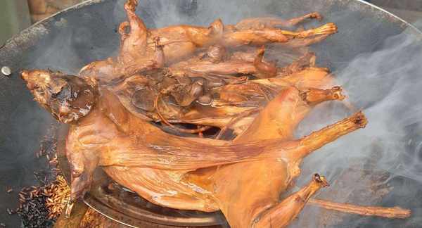 在当地有一句话,叫“老鼠干和猪肉同价”,可见老鼠干的地位有多高,老鼠干的制作,最独特的是最后一步需要用烟熏,用米糠或者米饭,把田鼠肉中的水分逼出来,快速风干,不仅可以长久保存,还有独特的烟熏风味。老鼠干很好吃,只是外观有点恐怖罢了。