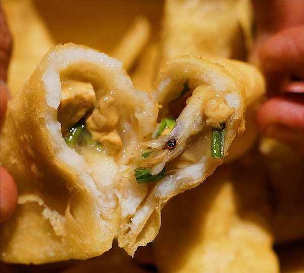 【推荐理由】各地都有饺子,但是安徽的三河米饺可以作为当地传统的名小吃,其特点是饺皮由籼米粉制成,用五花肉等及调料制成馅,包成饺子形状后油炸而成。其外形色泽金黄,馅味鲜美,外皮微酥脆。