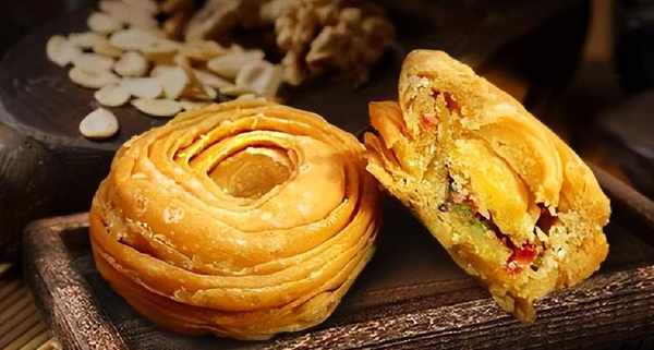 【推荐理由】作为安徽寿县传统特色名点,其名字也很有特色,加上有一千多年历史了,作原料也是特别丰富的,一般有:猪板油、青红丝、金橘饼、核桃仁、冰糖、白糖、青梅、糖桂花等。经过特殊的工艺加工而成后,其形扁圆,中间呈急流漩涡状,多层花酥叠起、如金丝盘绕,色泽金黄,香甜酥脆,重油而不腻,而且还带有果料香味,吃了很让人回味[爱慕]