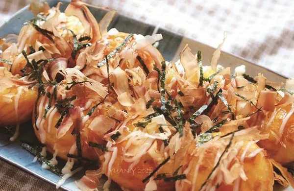这道小吃就是从日本流传到中国的章鱼小丸子,学名叫做章鱼烧。章鱼烧起源于日本大阪,起源年代是日本大正年代 ,是日本家喻户晓的国粹小吃。后来,章鱼小丸子在东南亚各地区流行起来,成为各地区的新兴食品之一。在日本已有80多年的历史,是日本民间一种流传很久的风味小吃,据说章鱼烧最早出于大阪的章鱼烧丸专营店会津屋的创始人远藤留吉之手。远藤留吉起初将肉、魔芋等加入调开的小麦粉面糊里煎烧后放在食摊上卖。后来,1935年时,远藤留吉开始使用章鱼作为原材料,并在面糊中加入调味品,煎烧出的章鱼烧丸大受人们的欢迎。因每颗章鱼丸里都有鲜章鱼肉,其味鲜而香,营养成分十分丰富,广受消费者的青睐,故得其名为章鱼小丸子,又名为章鱼烧,很快,章鱼烧从大阪被推广到日本全国。后来,章鱼小丸子在东南亚各地区流行起来,成为各地区的新兴食品之一。
