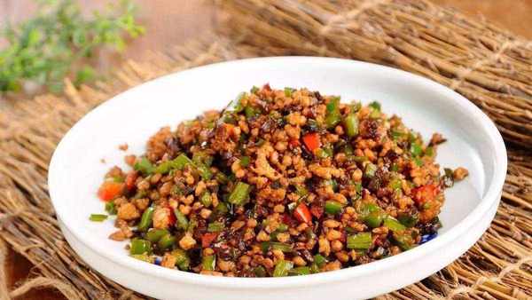 黑三剁以猪肉馅、红椒和青椒作为主要原料,以煸炒的方式烹饪而成,成菜后气质十分宜人。