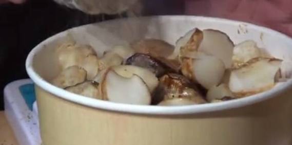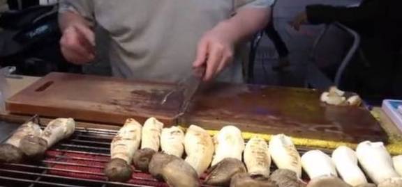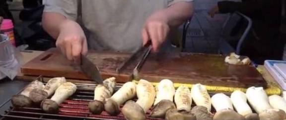 来到摊子前面就能闻到一股浓浓的蘑菇香味,只见老板是一位中年男子,在他的烧烤架上只摆杏鲍菇一种食材,问道老板的生意为什么这么好?老板说这主要取决于他选用的食材,这些杏鲍菇在外表看来都是很新鲜的,而且每一个都肉质肥美,个头很大!2年前下岗迫使他在街边摆摊凭着上好的食材,和耐心的烹饪赢得了好的收入!