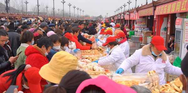 河南周口淮阳太昊陵庙会每年二月初二开始,一直持续到三月初一。14平方米的展位拍得97万。据店主说,去年的价格是98万多,今年来了一个,带了100万现金,没想到中了41万。32天的庙会,除了自制和压制的三明治,什么都没卖。预计每月销售额为一百万。