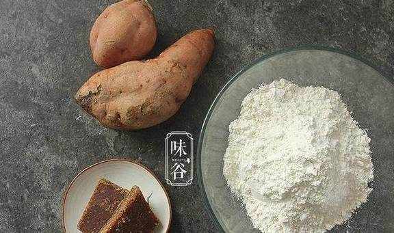 【材料】:红薯450克、面粉150克、糯米粉50克、红片糖80克