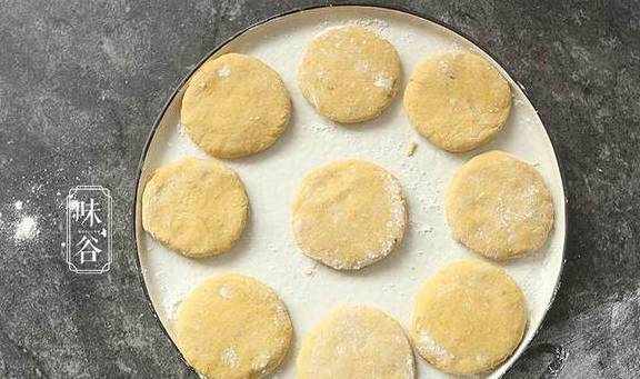 6、把面团分成差不多大小的小面团,搓圆后按扁;