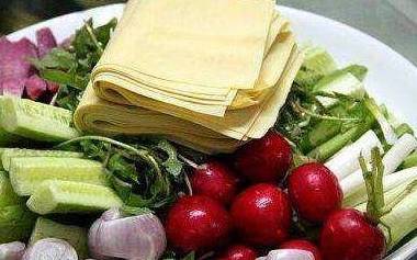 东北蘸酱菜,这道菜一上,我们都懵了,完全没有办法下口好吗?都是生的,完全不是我们能接受的,这菜你说怎么吃?朋友倒是不慌不忙,豆皮一卷,蘸着酱料就吃起来了,尝试了一下,意外的觉得很不错!
