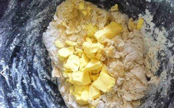 3.加入植物黄油揉成面团。