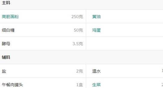 1.称好高筋面粉250克,植物黃油30克,细白糖50克,干酵母3.5克,温水100ml,盐2克,鸡蛋两个备用。