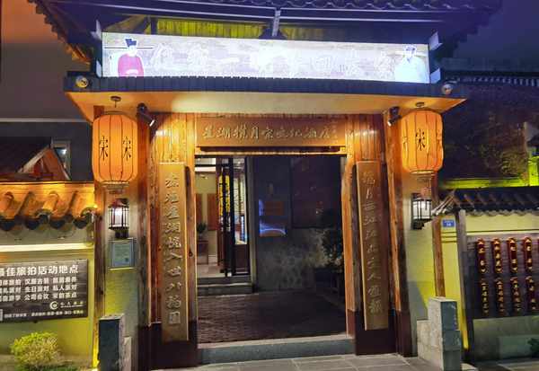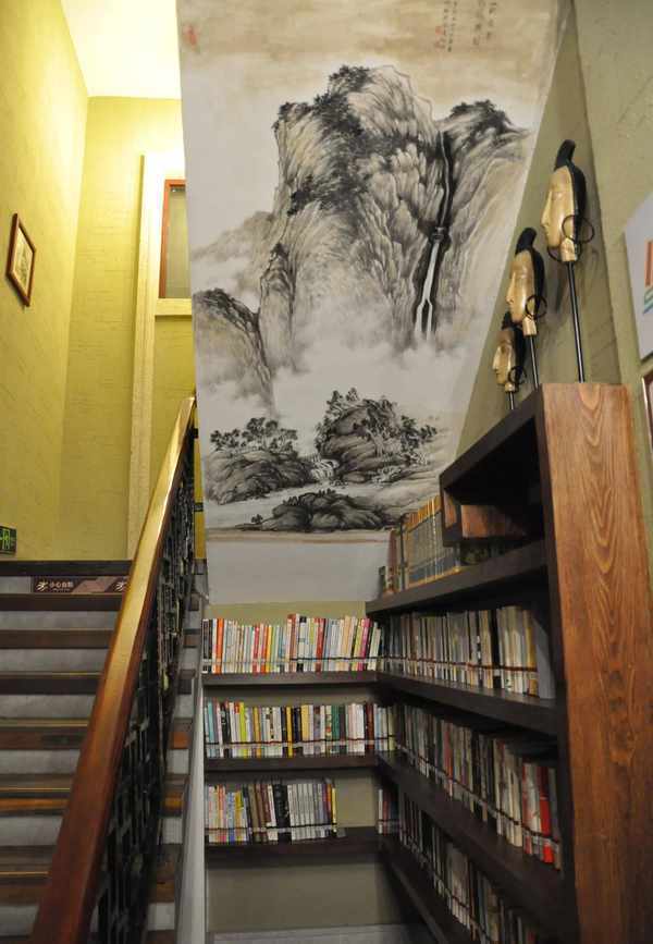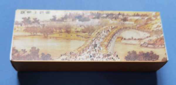 连牙刷外壳上都应有《清明上河图》的片段。楼梯的斜坡上画的也是宋代的山水。