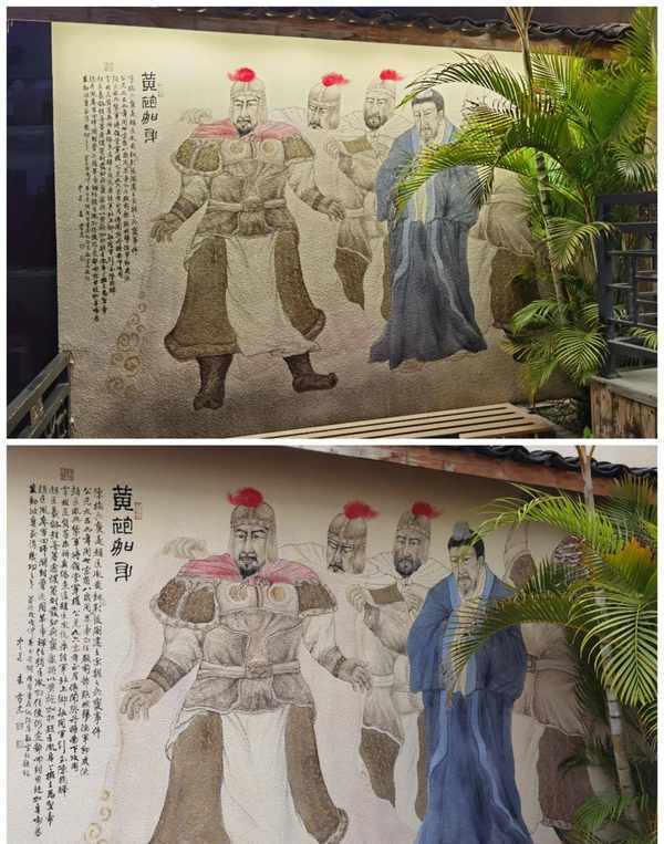 用《黄袍加身》的壁画诠释“杯酒释兵权”的历史故事,这种文化气息,不是精品酒店是不会这样下功夫的。