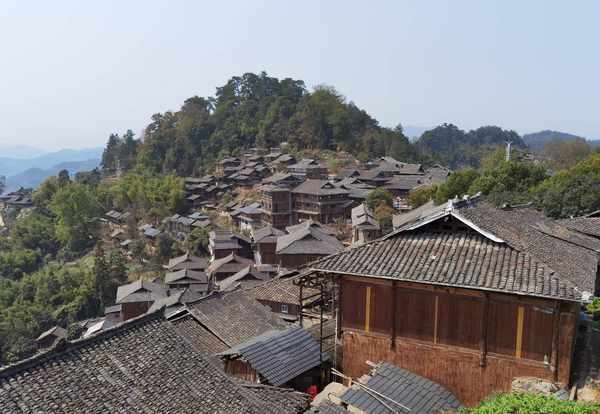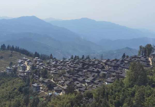 陈列馆也是一个不错的观景台,可以看到岜沙寨子的全景。最美的景色应该是在雨后,雾气缭绕的岜沙寨子,可惜当时天气太好了,没有要下雨的感觉。这个寨子已经是保护区了,不能在寨子里建房子了。