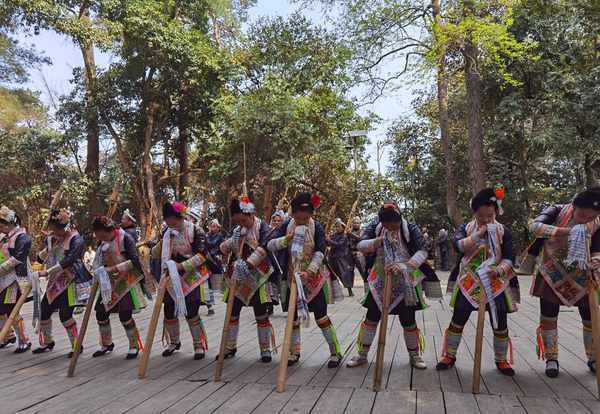 岜沙的姑娘和小伙子从小就在树林里玩乐,长大后会相约到树下 “守垴”,他们在青山树林下相知、相恋。在恋爱方面,往往都是女方主动向男方求爱,形成了岜沙独特的婚恋习俗。姑娘只要在守垴时看上哪位小伙子,就会把自己亲手绣织的相思带送给她心仪对象,向小伙子表达自己的爱意。岜沙的婚俗简约朴素,岜沙姑娘出嫁当天身穿苗族新装,不坐车不坐轿,也没有任何嫁妆,由娘家人护送着自己走到郎家去。