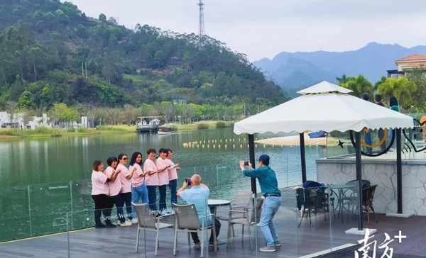 游客在春沐源小镇拍照打卡。 南方+ 余佩 摄