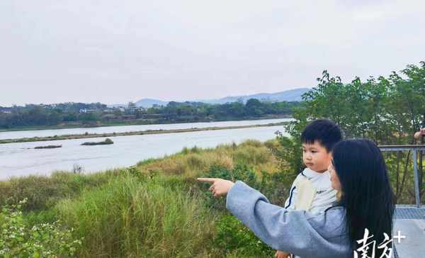 市民带着孩子到白鹭岛公园游玩。 南方+ 余佩 摄