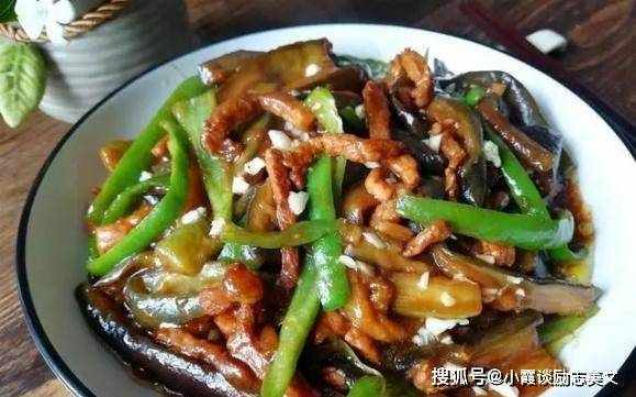 肉丝辣椒炒茄子条