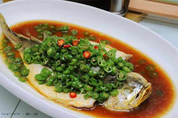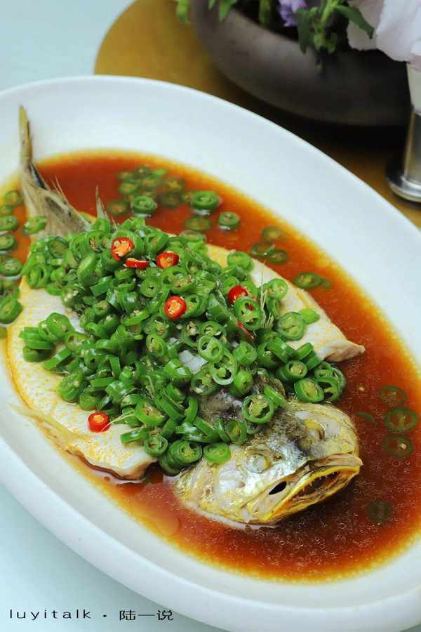 藤椒黄花鱼 1.2-1.5斤重的散养黄花鱼,体格适中,肉质细腻。标准川菜的做法,四川汉源的青花椒与本地信息的青线椒调制麻辣的酱汁,鲜嫩异常,椒香浓郁。