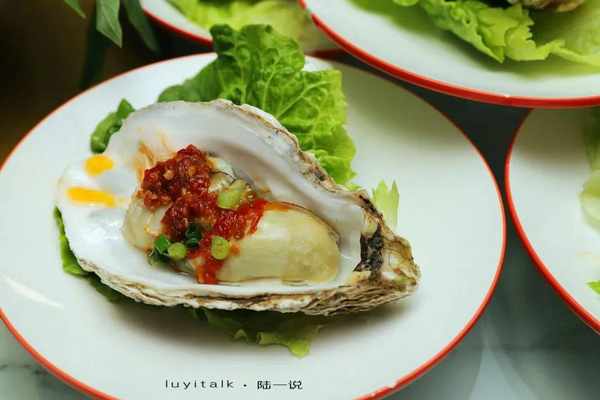 剁椒大生蚝 蚝入半壳,剁椒微蒸,蚝房鼓涨,海鲜的鲜与川味的鲜互相成就。入口滑嫩,鲜辣,开胃,唇齿留香。