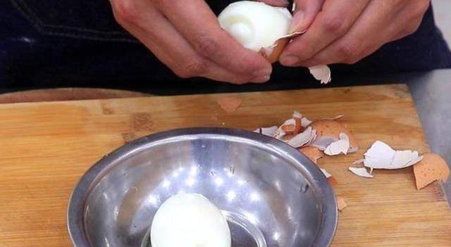 第三步:将煮好的糖心蛋取出来放在凉水中过一下,再将鸡蛋壳剥掉备用。