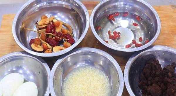 第五步:再准备一把枸杞,放在清水中浸泡着备用。准备好酒糟跟适量的红糖。