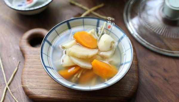 食材:粉葛1块(250克),茅根100克,胡萝卜一根,马蹄5-6个,清水2升。