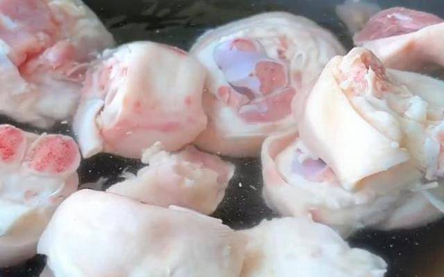 女人应该要多吃一些,用刀把表皮的污垢刮一下,再清洗干净,沥干水分。然后冷水下锅,把猪蹄用水焯一下水,放入几片姜片,倒入一勺料酒,先用铲子把它翻拌均匀,再大火煮开。