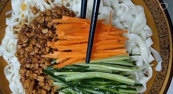 4、一碗再正宗不过的炸酱面就做好了。当然,关于酱,如果你能加点肉丁,加点大酱在锅中炒一下的话,味道会更好,如果通过这篇文章,能勾起你想做一做的欲望的话,那祝你好运,先这样一点点做起,定会成功。好好品尝吧!