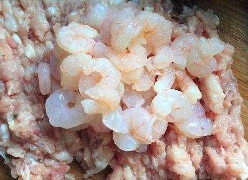 第一步:鲜虾去头去线,把壳剥掉取出虾仁清洗干净,然后将它掺到猪肉馅中剁碎,接着将剁好的馅料装入碗中,加入适量白胡椒粉、姜末、料酒、生抽和食盐,再打入一枚鸡蛋清,加上淀粉,用筷子不停地将它搅拌,搅至上劲。