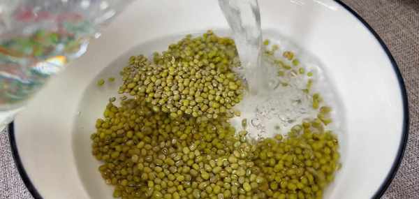绿豆我们在家都不陌生,清热解毒,消暑去火,像在炎热的夏天,多喝一些绿豆汤非常的有利健康。首先我们把准备好的绿豆倒在一个大碗里面,再加入清水