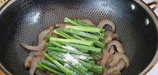 食材:虾仁,食用油,葱,食用盐