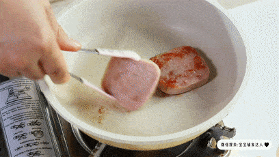 小火给午餐肉烙到两面金黄的,同样是盛出来备用。