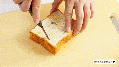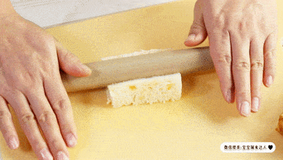 取出来的吐司芯擀薄,别扔也别顺手就吃了,一会儿还要用到它。