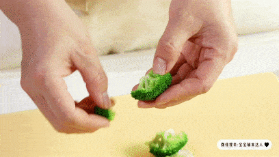 西兰花掰成小朵的,如果孩子比较挑,你们也可以和胡萝卜一起切碎。