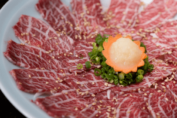 与鱼生鱼片一样,许多居酒屋和烧肉餐厅都有名为 basashi的马刺身。类似于鱼生鱼片,它会蘸上酱油生吃,有时也会在烧肉餐厅用火焰般的牛肉烤着吃。