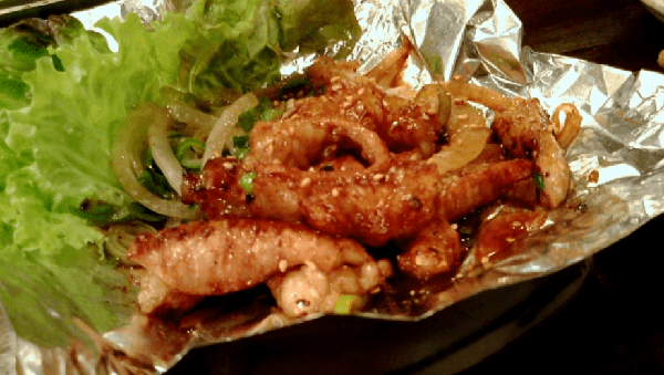 它看起来与生牛肉片非常相似,所以我有点犹豫要不要尝试,但吃了几条后,我印象深刻。肉通常在上面放上大蒜,不耐嚼但很嫩,没有像山羊或羊肉那样的野味。