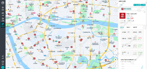 塔斯汀在广州的部分门店分布/图源:GeoQ Ana 品牌分析工具