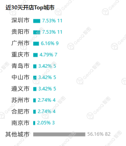 最近一个月塔斯汀在深圳和贵阳开店数较多,仍旧注重优势区域和中低线城市的扩张。