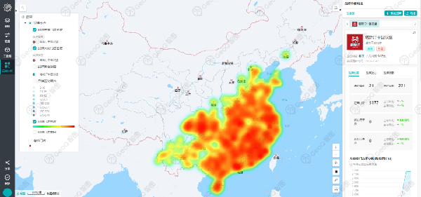 塔斯汀中国汉堡在营门店热力图/图源:GeoQ Ana 品牌分析工具