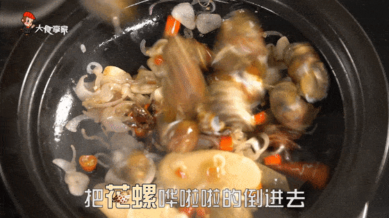 6.敢敢倒直到白酒快要淹没花螺的时候就可以。这个时候要注意注意,非战斗人员撤离现场,千万别被这道菜伤到呀。