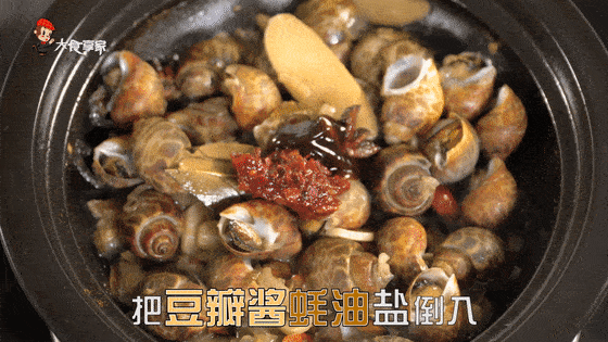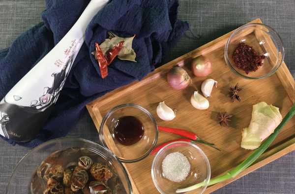食材:花螺(半斤)豆瓣酱(1勺)耗油(1勺)红葱头(2粒)蒜头(5瓣)姜(适量)盐(1小勺)八角(2块)香叶(2片)辣椒(适量)葱(适量)干辣椒(适量)白酒