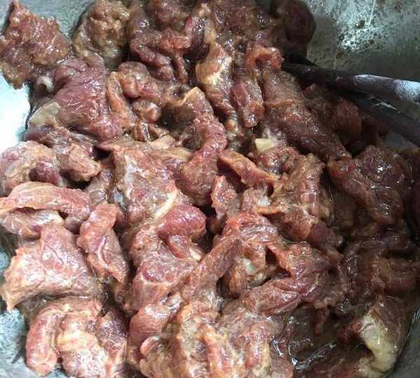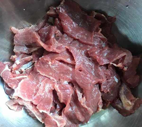 第1步、牛肉提前浸泡一会儿切片。