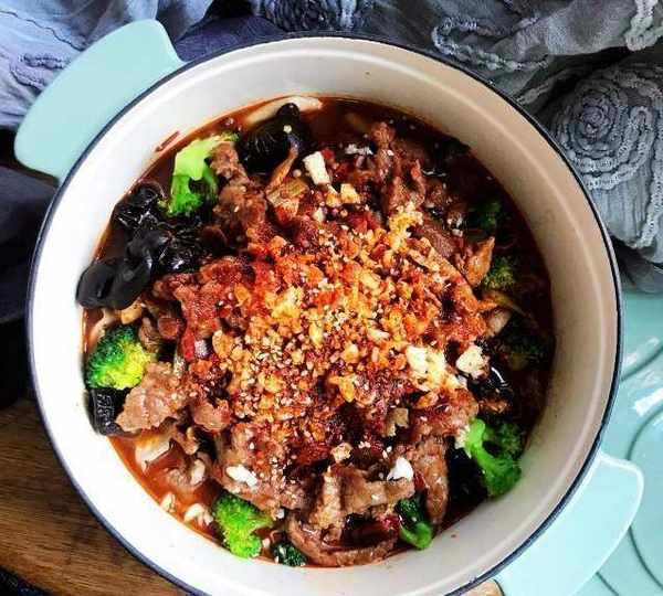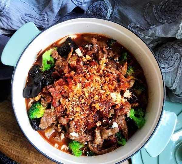 原料:牛肉、黄豆芽、西兰花、豆皮、木耳、葱、红辣椒、花椒、姜、蒜、盐、油、五香粉、姜粉、淀粉、酱油、料酒、蚝油、豆瓣酱、水、辣椒粉、白芝麻、糖。