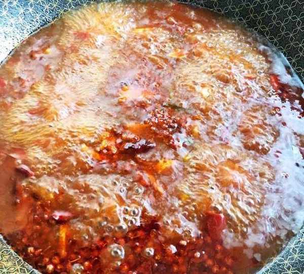 第8步、锅中入油烧热,放入配料和豆瓣酱炒香。
