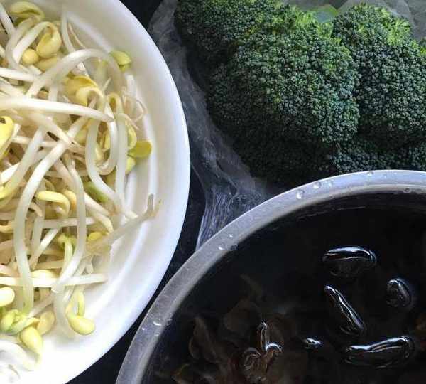 第3步、黄豆芽,西兰花洗净,木耳提前浸泡。