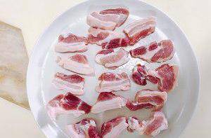 2.五花肉洗净切成2cm厚的小片